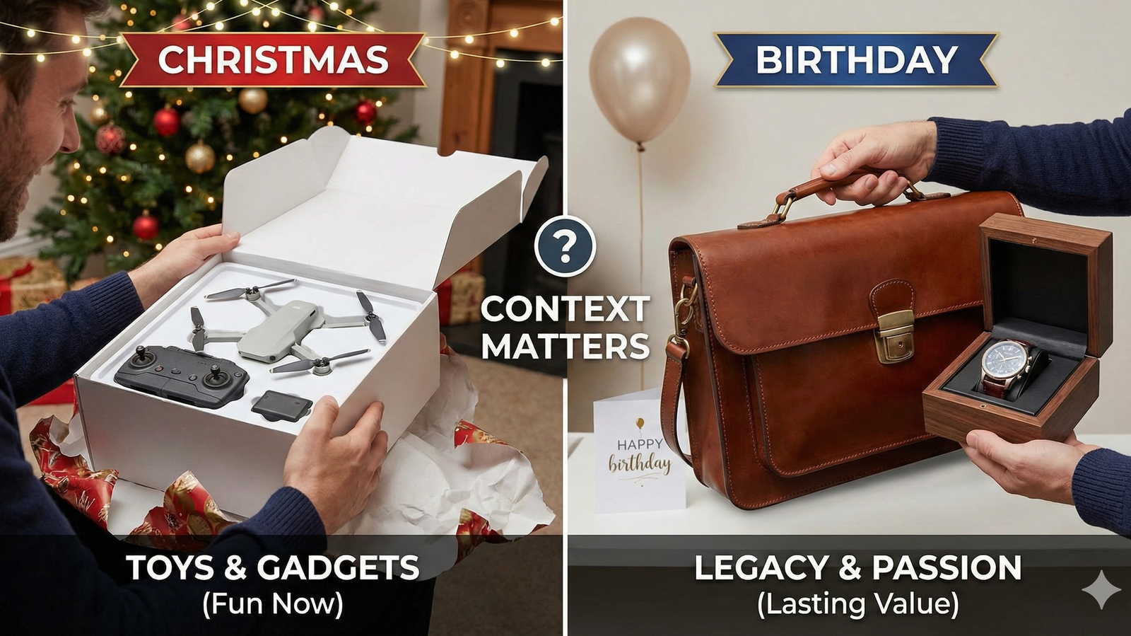 Save the serious, high-end “legacy” gifts like watches for Birthdays or big Thank Yous. Treat Christmas and “Just Because” moments as chances for fun, low-pressure gadgets he can enjoy immediately.